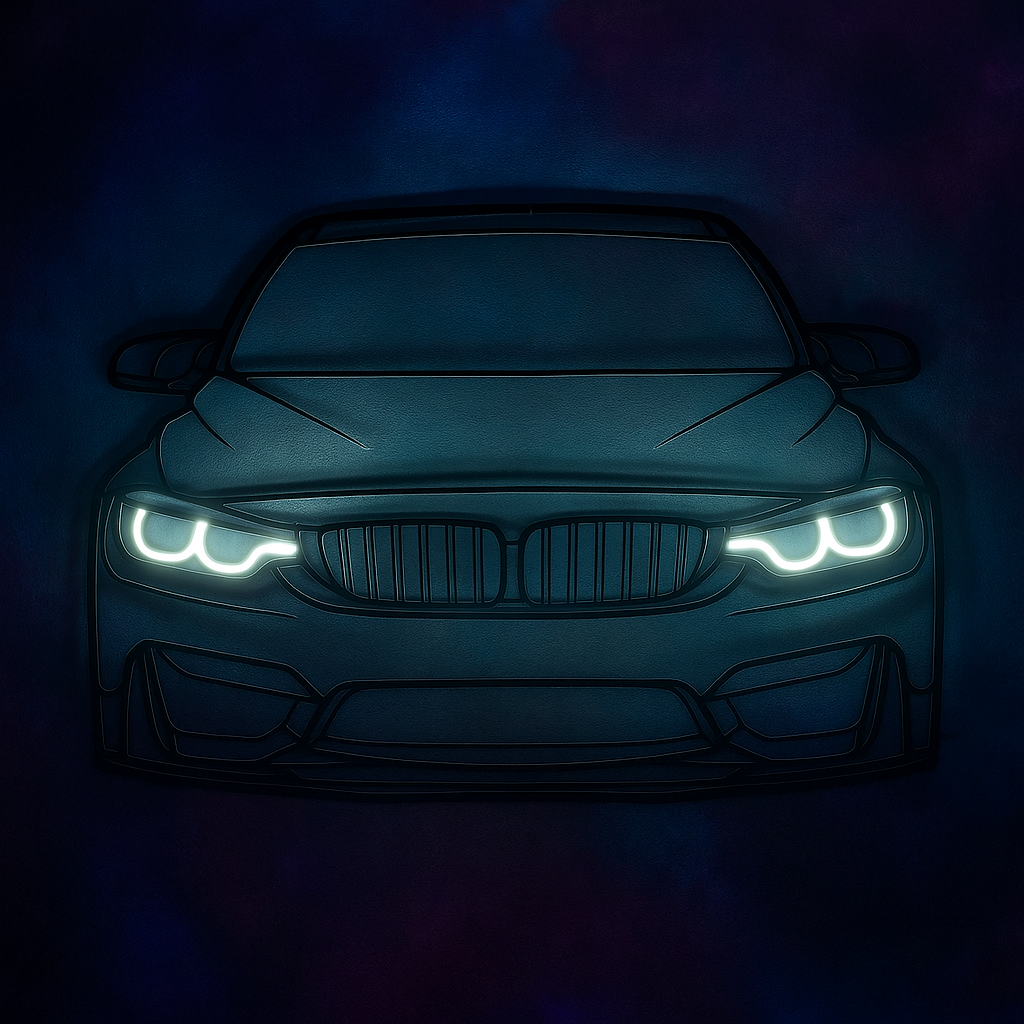 تابلو چوبی طرح ماشین bmw با چراغ نئونی