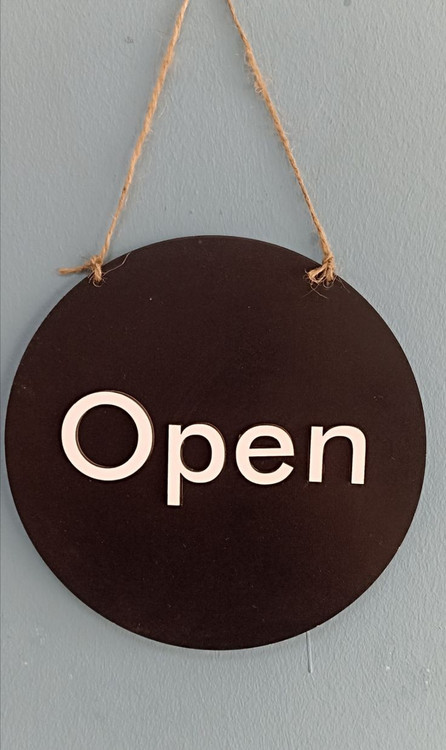 این تابلو قابلیت نمایش دو حالت دارد. یک طرف نوشتهی OPEN (باز) و طرف دیگر CLOSED (بسته) حکاکی شده و شما میتوانید بسته به ساعات کاری، به راحتی تابلو را برگردانید.